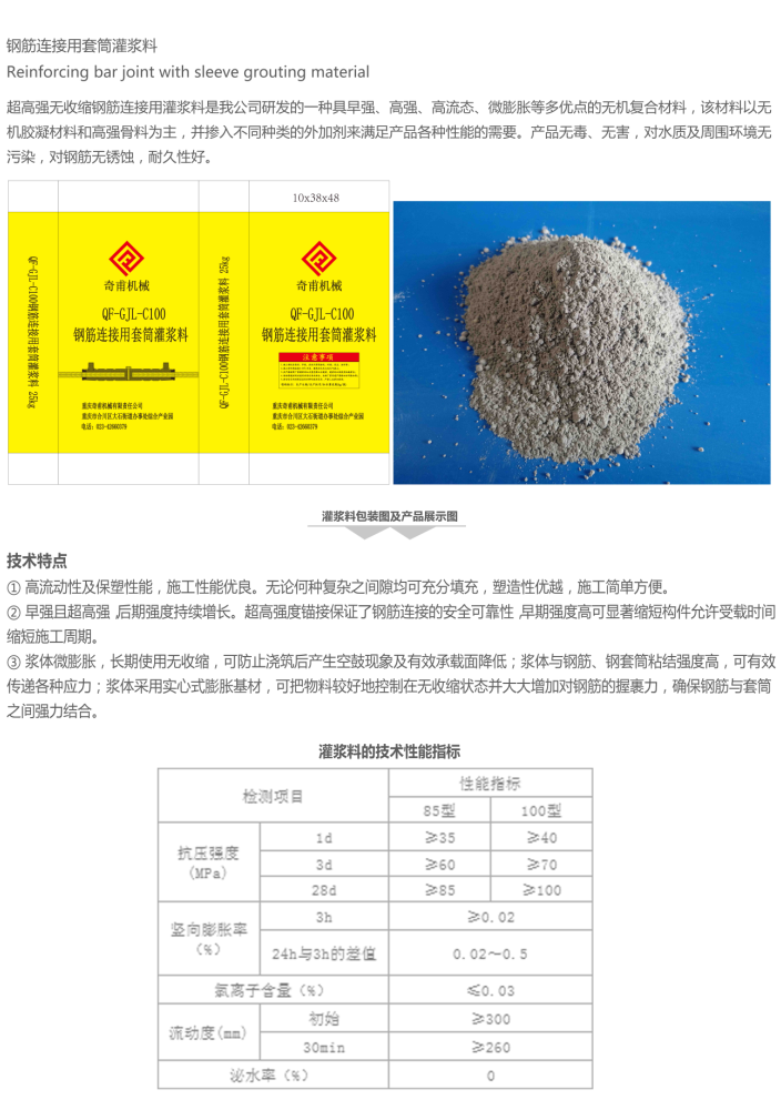 鋼件連接套筒用灌漿料