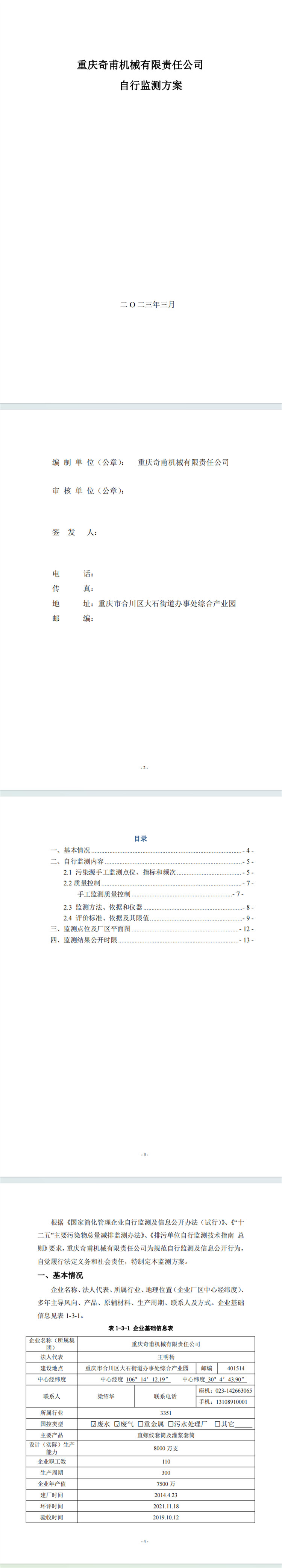 重慶奇甫機械有限責任公司 自行監(jiān)測方案